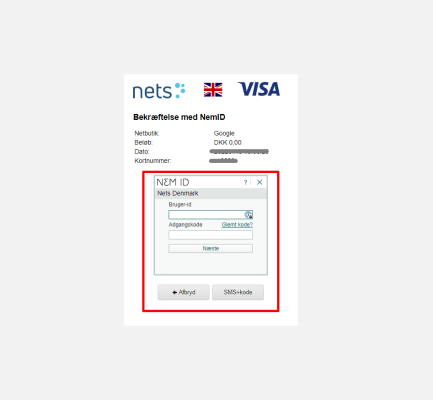 Bekræft oplysningerne via nemID, som vist nedenfor.