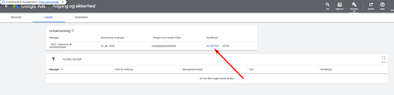 Vi har nu adgang til at administrere til din Google Ads konto.