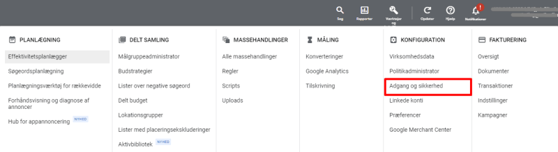 Adgang til din Google Ads konto