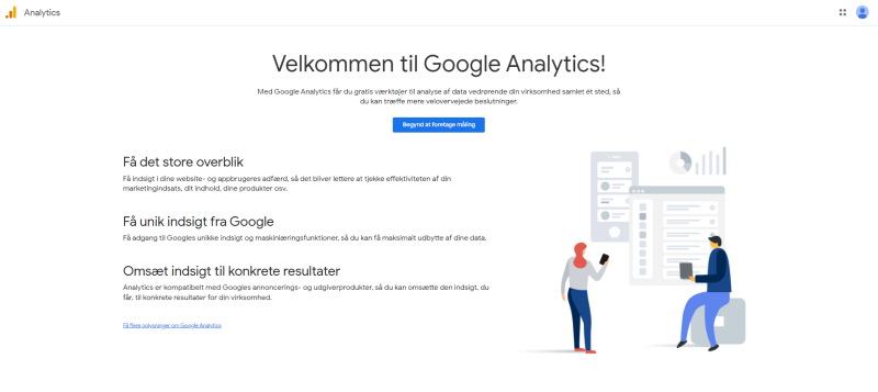 Hvis du får følgende billede, så tyder det på at du ikke allerede har en Google Analytics konto.
