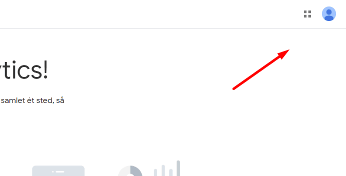 Tjek at du er logget ind på den korrekte Google Konto, hvor din Google Analytics er/skal være tilknyttet til. Klik oppe i højre hjørne.