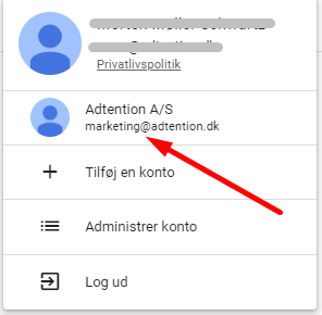 Herefter skal du vælge din konto i boksen der dukker op i øverste højre hjørne.