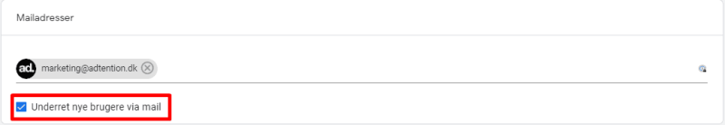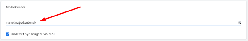 Under Tilføj roller og databegrænsninger skal du indtaste e-mailadressen: marketing@adtention.adtention.dev i feltet angiv mailadresser, som vist herunder: