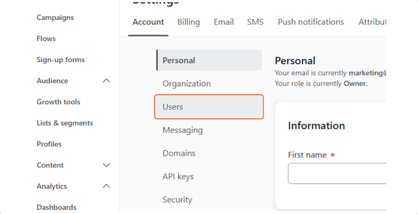 Under Settings skal du klikke på “Users”, som vist nedenfor.
