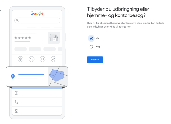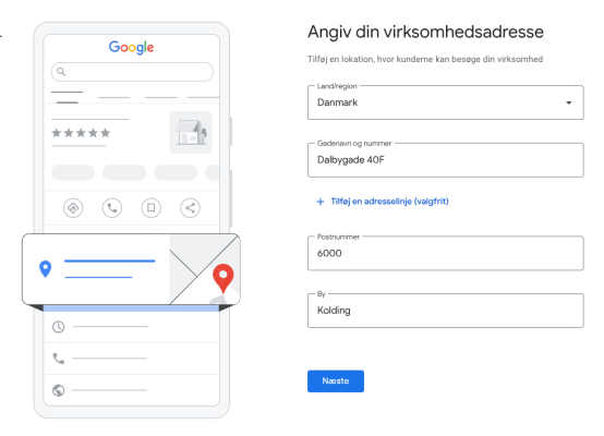 Næste skridt er at indtaste adressen for din virksomhed. Dette gør det muligt for kunder at finde din virksomhed på Google Maps. Når din adresse er indtastet, vil din virksomhed blive synlig for personer, der søger efter lokale tjenester.