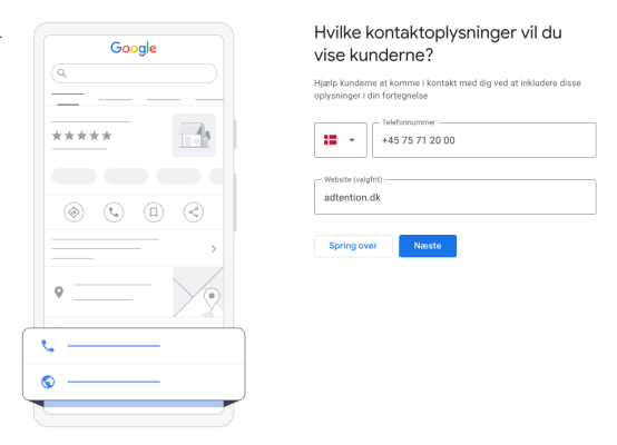 Til sidst skal du tilføje dit telefonnummer og din webadresse. Dette gør det muligt for kunder at kontakte dig direkte og besøge din hjemmeside for yderligere oplysninger om dine produkter eller tjenester. Hvis du ikke har en hjemmeside, kan du oprette en gratis hjemmeside via Google My Business.