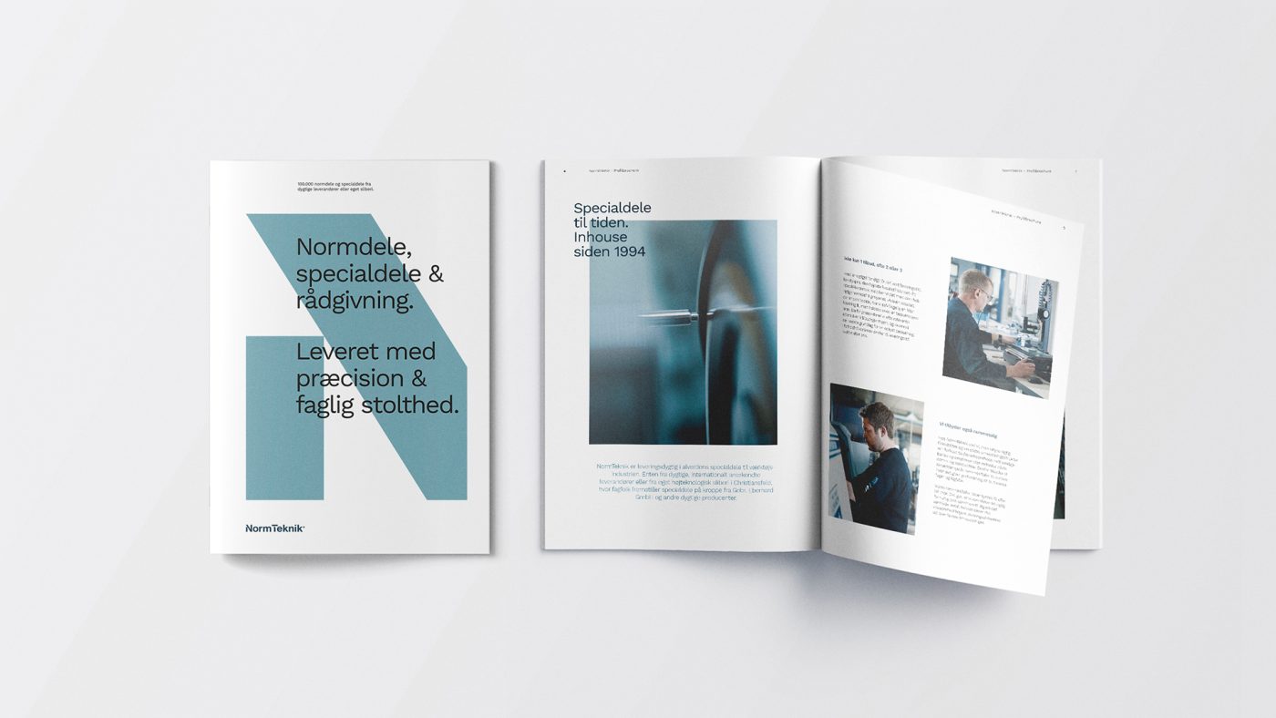 Oprindeligt lød henvendelsen på: “Vi vil gerne ha’ en ny brochure” – men efter et besøg hos virksomheden og efterfølgende dialog, blev ambitionsniveauet hævet markant. Deres gamle look stod ganske enkelt ikke længere mål med den moderne virksomhed, vi så. For nok har en analog tilgang til tingene skabt den succes, de unægtelig er, men det går så stærkt, at NormTeknik skal være skarpe på alle ledder og kanter i dag, hvis de skal opretholde deres position i markedet, og levere normdele lige så overbevisende i morgen.