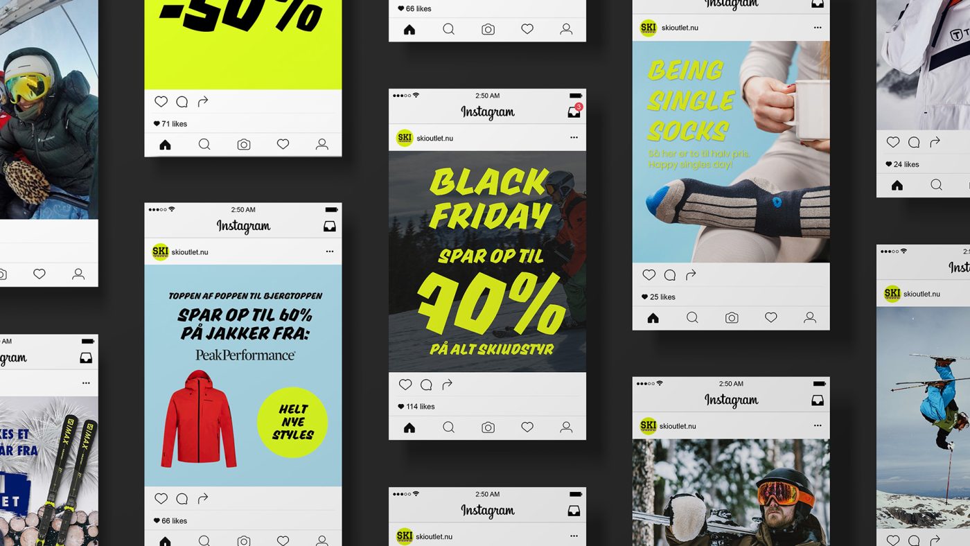 Du kender det sikkert: alt for få, alt for gamle varer. Jo jo, ganske vist til lave priser, men så er det altså også ud af vagten. Sådan glider skiene ikke hos Skioutlet.nu. Her får du ingen dårlige undskyldninger kun et outstanding sortiment af nye varer langet over disken med rådgivning og service i højsæde. Udover kæmpe besparelser selvfølgelig. Alt det pakkede vi ind i en ny identitet med smæk på farver og et moderne og alligevel tidløst logo inspireret af 80’ernes collegelook. Signalet står lysende klart: nok er skiene billige, men SkiOutlet sidder alligevel med forrest i skiliften, når udstyret skal være i orden inden skiferien. Derudover står vi for løbende kampagneudvikling og -eksekvering og implementering af ny E-handelsplatform med øget integration til ERP-systemer og sidst men ikke mindst masser af digital marketing.
