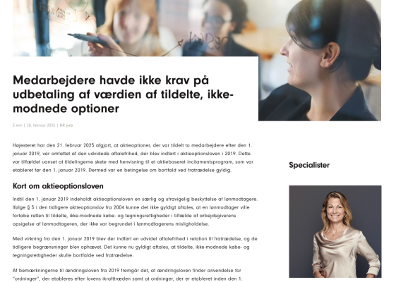 Clemens Law har opbygget et professionelt og gennemarbejdet blogformat, hvor de formår at gøre komplekse juridiske emner forståelige og relevante for læseren. Deres indlæg er velformulerede, godt strukturerede og formidler tydeligt deres store viden på området. De fremhæver samtidig de relevante specialister, som står bag indholdet, hvilket skaber tillid og gør det nemmere for læserne at finde frem til den rette ekspertise. Det hele er præsenteret på en tilgængelig og overskuelig måde, så både fagfolk og almindelige læsere kan følge med.