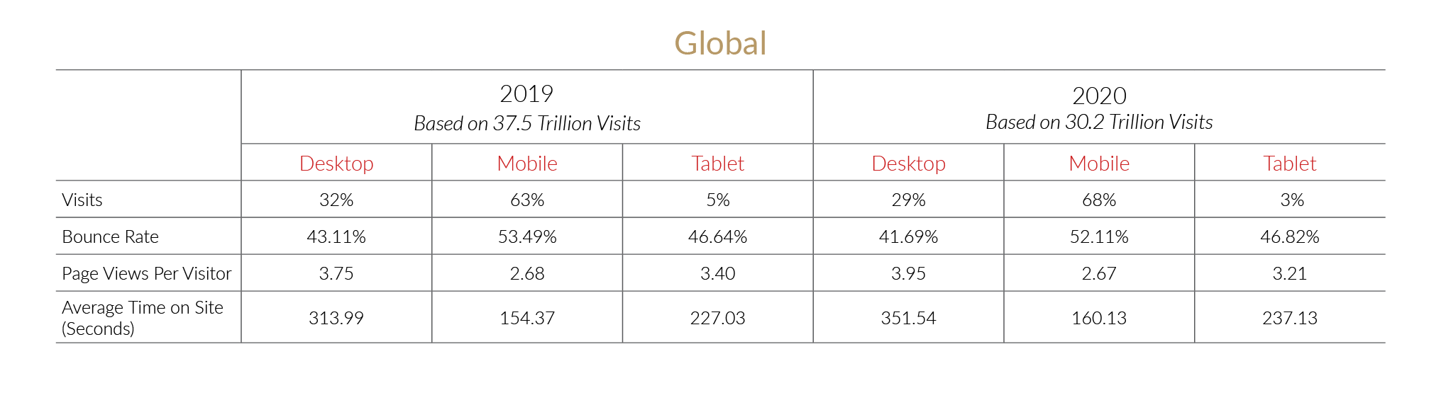 En af de vigtige fingerregler ved optimering af mobil venlighed er at forstå at brugerens interaktion og adfærd er væsentligt forandret fra om brugeren anvender en computer, tablet eller mobil. Dette er tydeligt at se på en undersøgelse foretaget af perficient som er baseret på 30.2 billioner besøgende fordelt på forskellige hjemmesider i hele verden. Så lad os dykke lidt ned i dataen for at forstå de besøgendes adfærd inden vi tager hul på de gængse fejl.