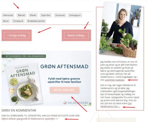 Ann-Christine bruger også intern linkbuilding til at linke til sine produkter, henvise til sin FAQ og sin ugentlige madplan, ligesom hun også henviser til sin ‘om’-side.